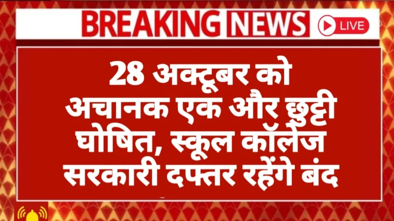 Public Holiday: 28 अक्टूबर को अचानक एक और छुट्टी घोषित, स्कूल कॉलेज सरकारी दफ्तर रहेंगे बंद